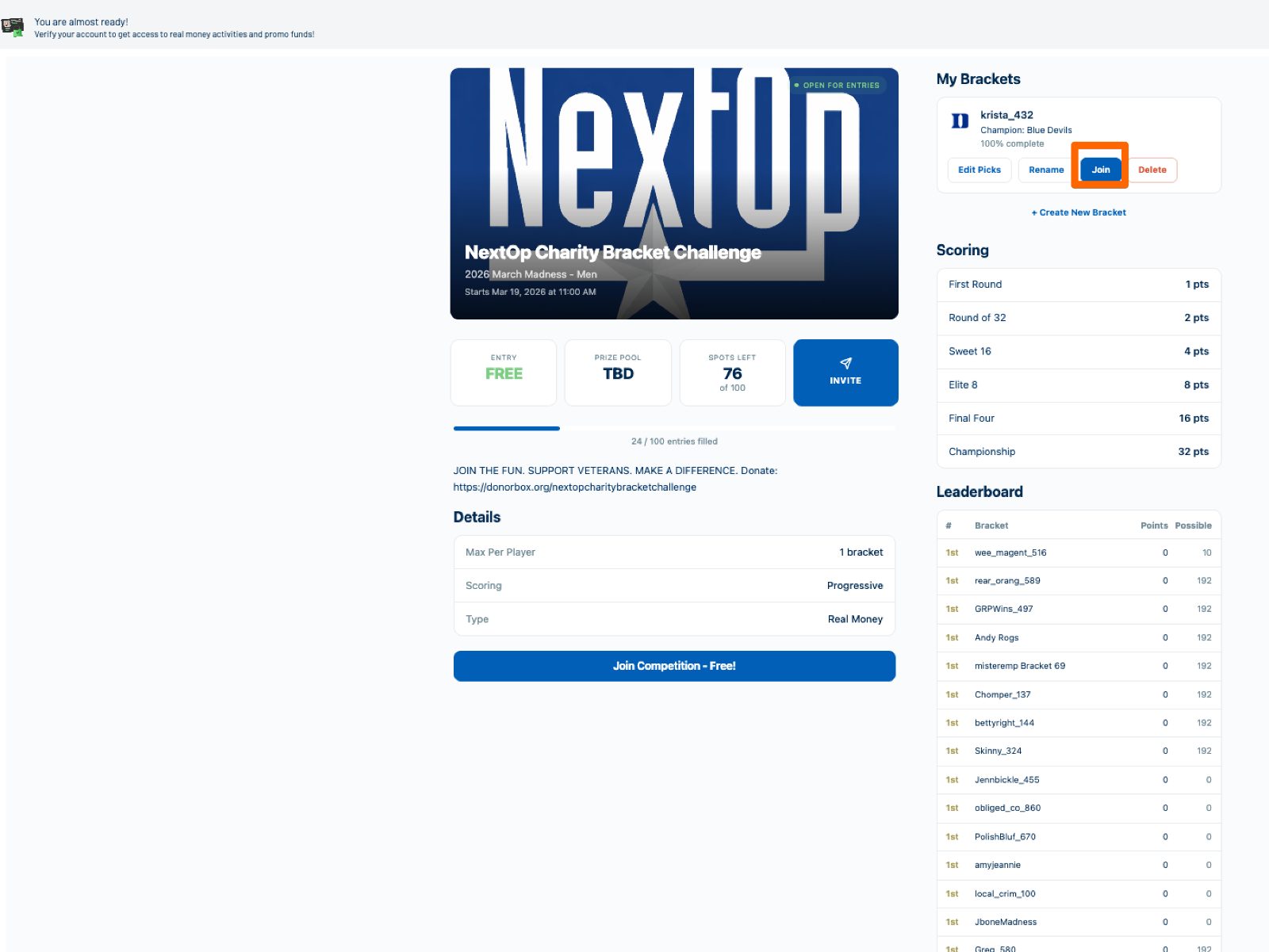 Step-by-step guide for How to Fillout Your NextOp Bracket. Follow each screen to complete the workflow in BettorEdge.