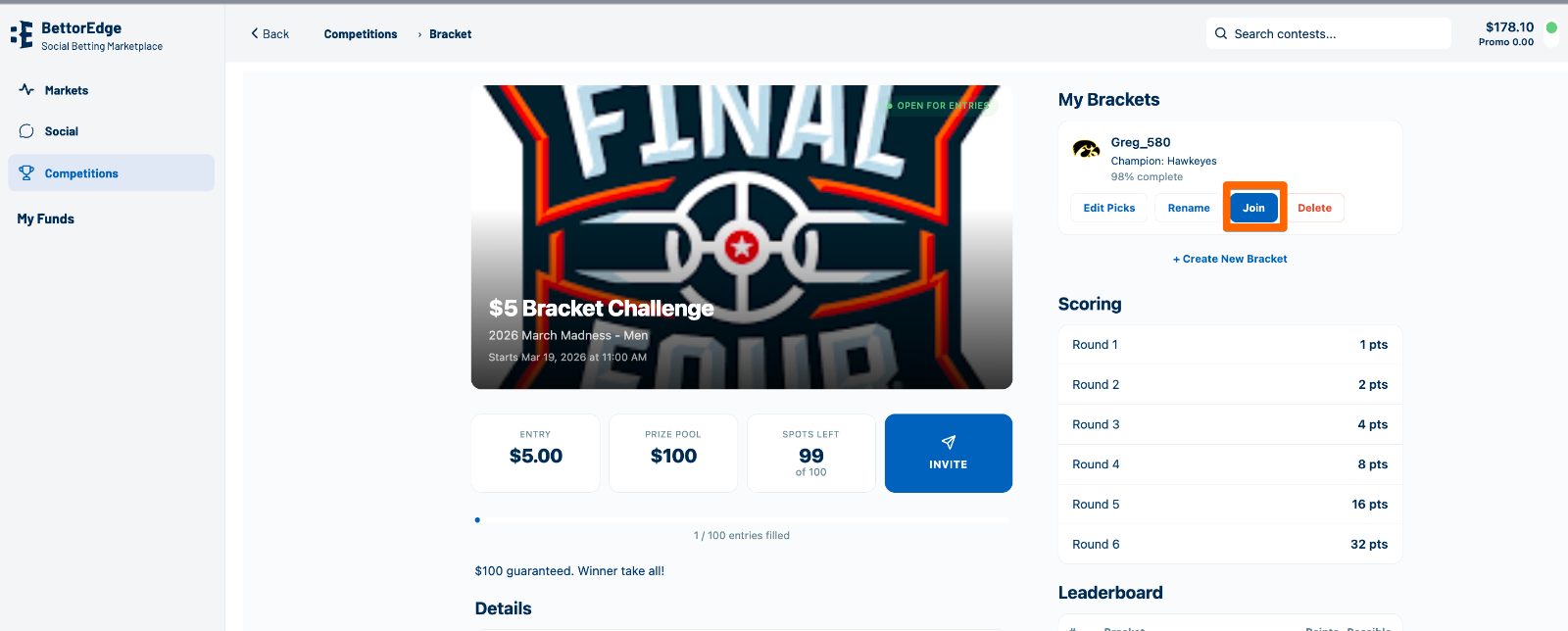 Step-by-step guide for How to Fill out Your March Madness Bracket. Follow each screen to complete the workflow in BettorEdge.